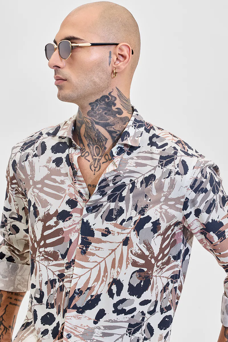 Vibrant abstract print elevates this slim-fit shirt, crafted from 100% viscose for a soft, breathable feel. Featuring a classic spread collar and full sleeves, it seamlessly blends style and comfort. Perfect for both casual outings and festive occasions, this shirt offers a standout look at an affordable price.