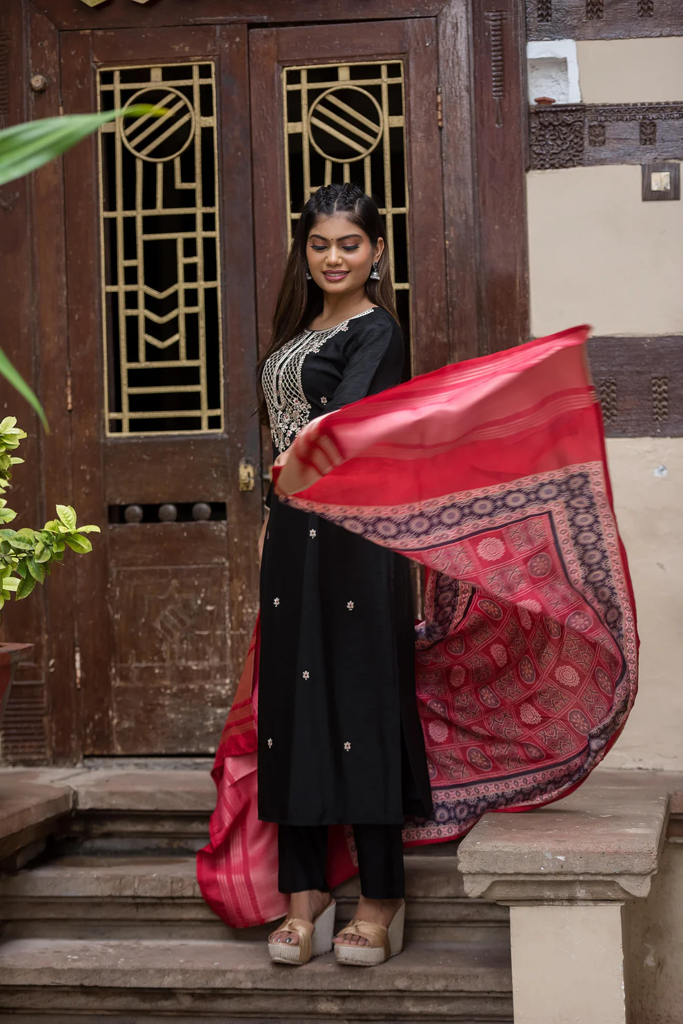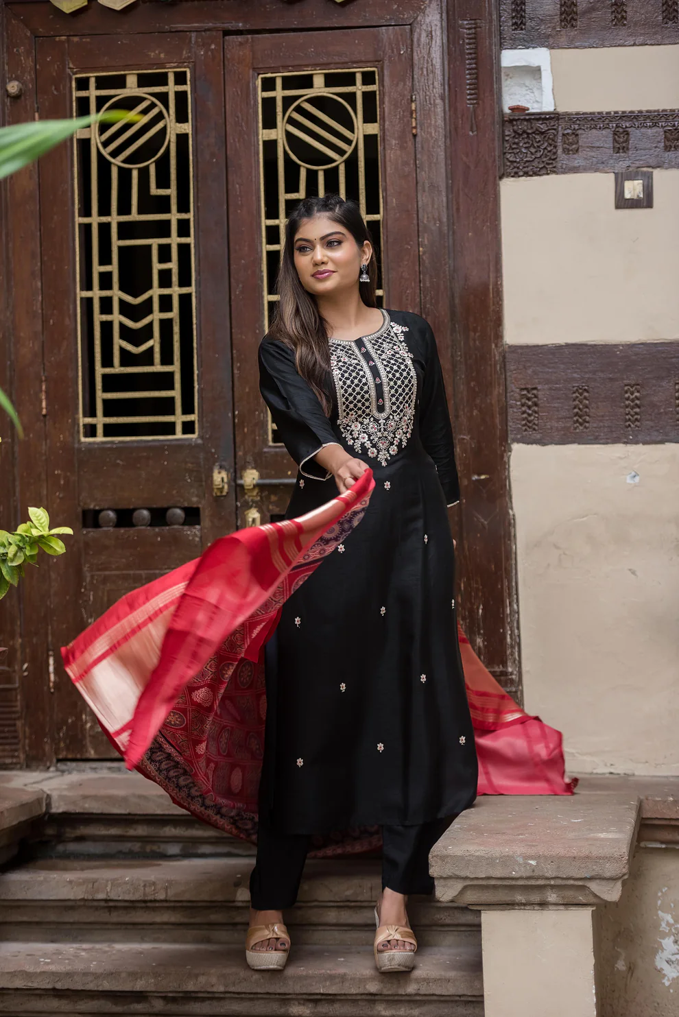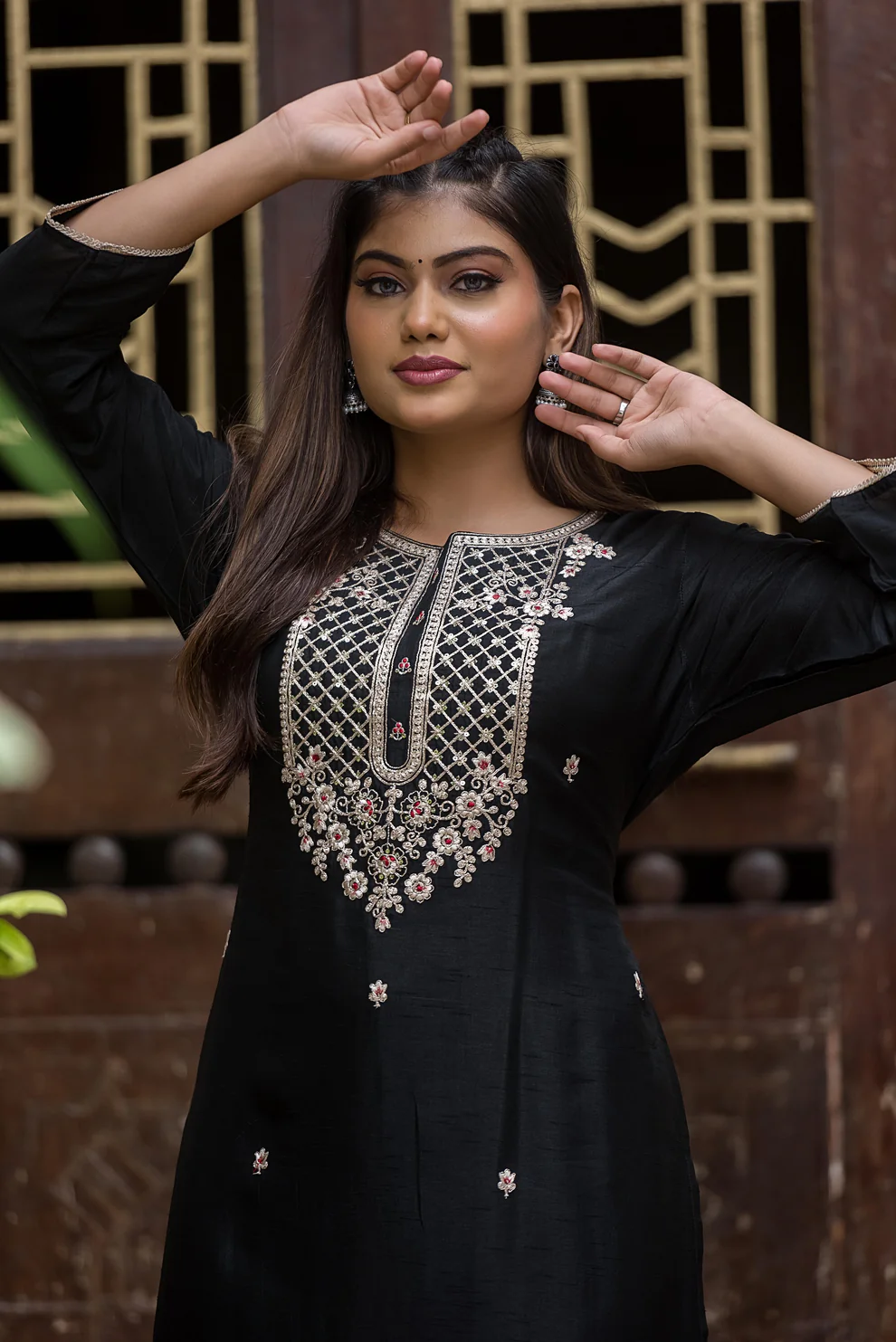 Elevate your look with Dhaage’s stunning black modal silk suit set. Crafted to perfection, this outfit blends elegance with timeless style. Perfect for formal occasions, wedding celebrations, this can be your go-to outfit.