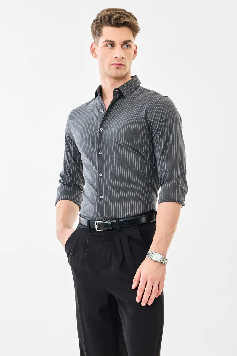 Sophisticated pinstripe design elevates this slim-fit shirt, crafted from a premium blend of 96% Polyester and 4% Elastane. Its lightweight, breathable fabric ensures all-day comfort, while the full sleeves and classic spread collar make it a versatile choice for both formal and smart-casual occasions.